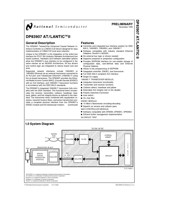 National semiconductor DP83907 AT/LANTIC II 数据手册.pdf