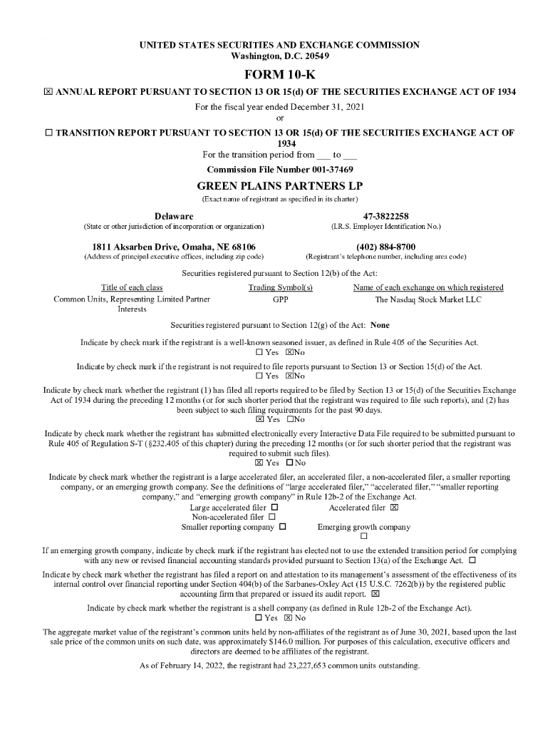 Green Plains Partners LP(GPP)2021财年年度报告(英文版).pdf