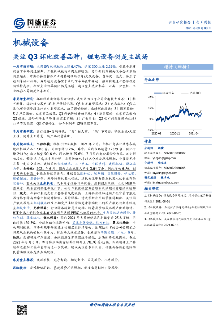 国盛证券:机械设备行业周报:关注Q3环比改善品种,锂电设备仍是主战场.pdf