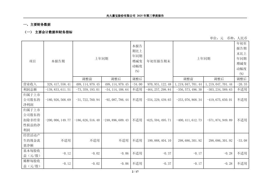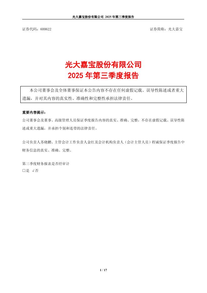 600622-光大嘉宝:光大嘉宝股份有限公司2025年第三季度报告.pdf