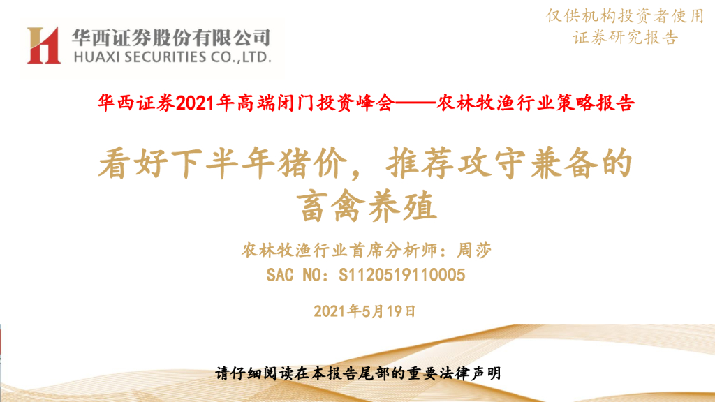 华西证券:2021年高端闭门投资峰会:农林牧渔行业策略报告:看好下半年猪价,推荐攻守兼备的畜禽养殖.pdf