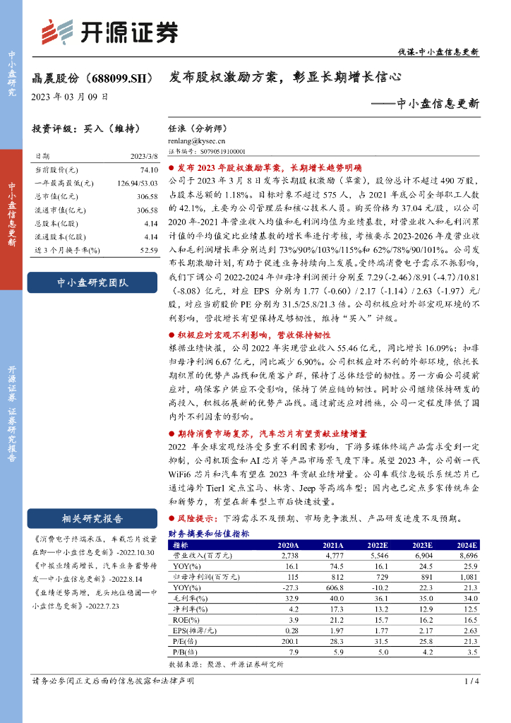 开源证券:晶晨股份(688099)-中小盘信息更新:发布股权激励方案,彰显长期增长信心.pdf