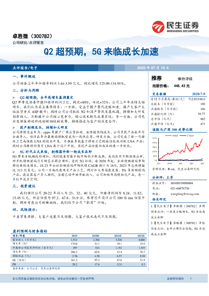 民生证券:卓胜微(300782)-Q2超预期,5G来临成长加速.pdf