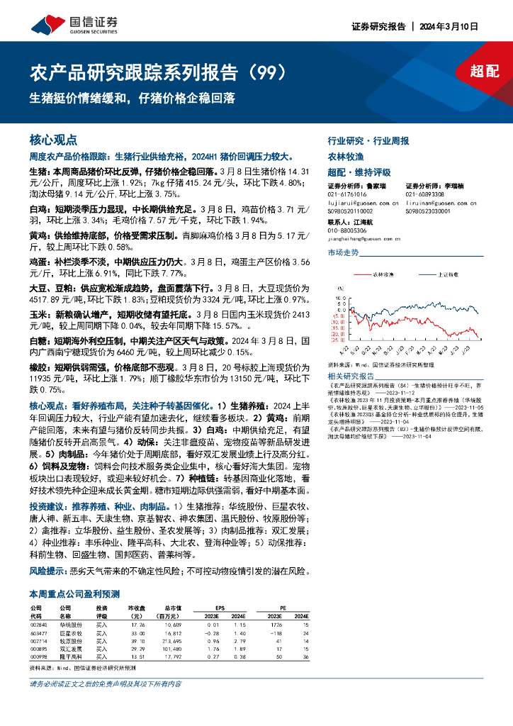 国信证券:农产品研究跟踪系列报告(99):生猪挺价情绪缓和,仔猪价格企稳回落.pdf