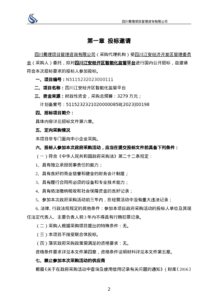 智慧化工园区-四川江安经开区智能化监管平台招标文件.doc