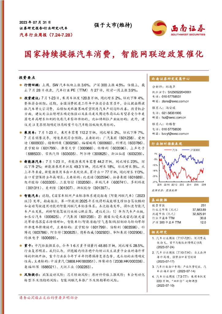 西南证券:汽车行业周报:国家持续提振汽车消费,智能网联迎政策催化.pdf