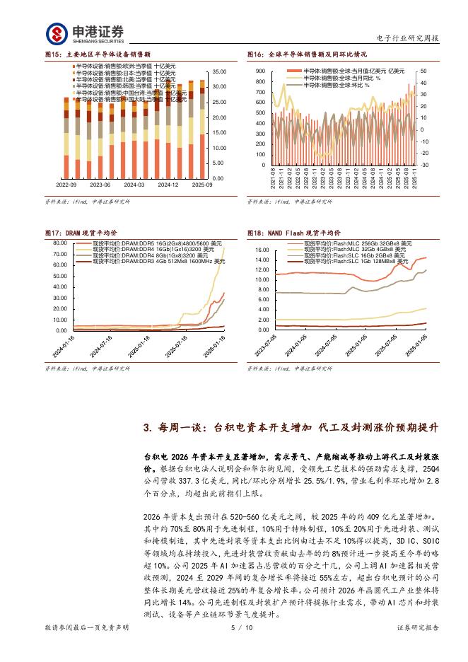 申港证券:电子行业研究周报:台积电资本开支增加,代工及封测涨价预期提升.pdf