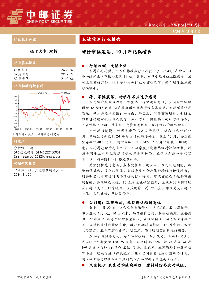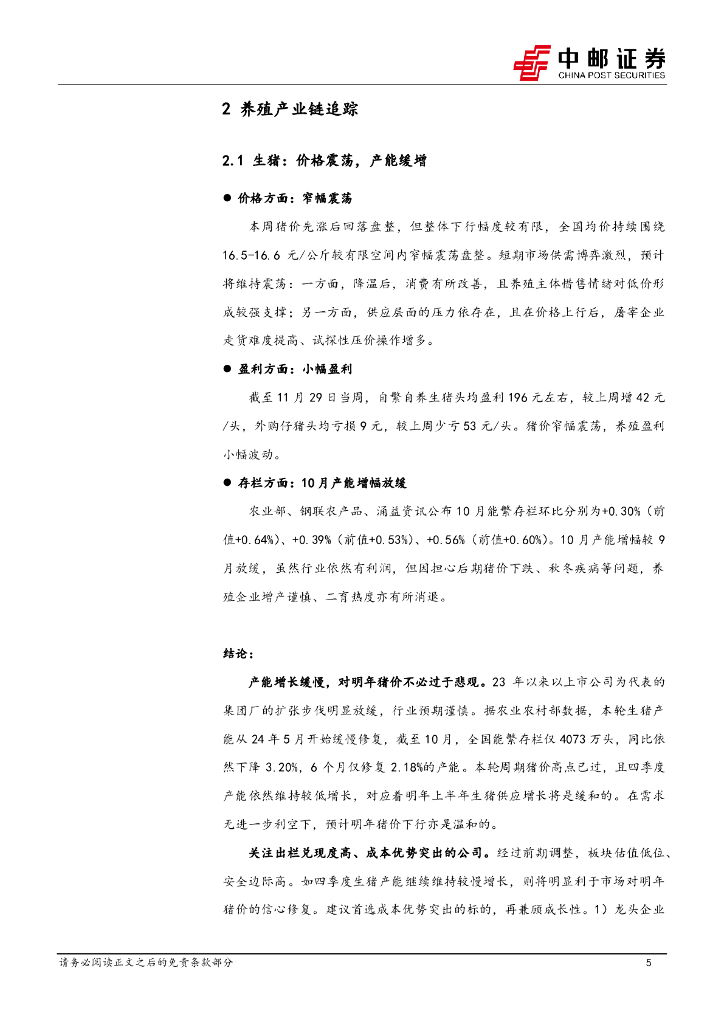 中邮证券:农林牧渔行业报告:猪价窄幅震荡,10月产能低增长.pdf