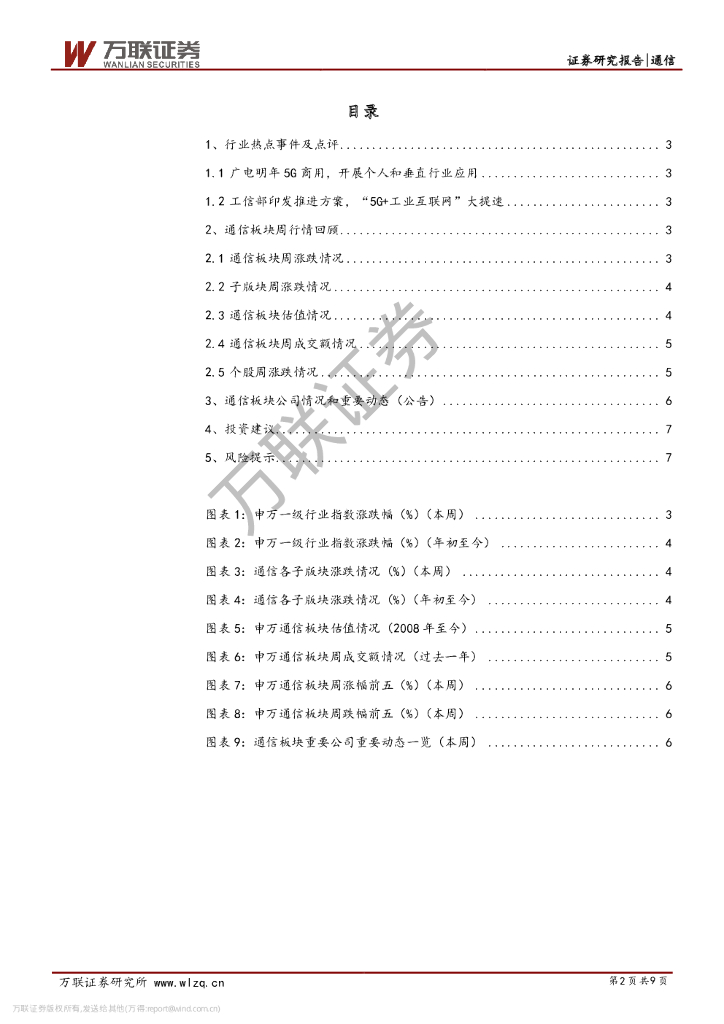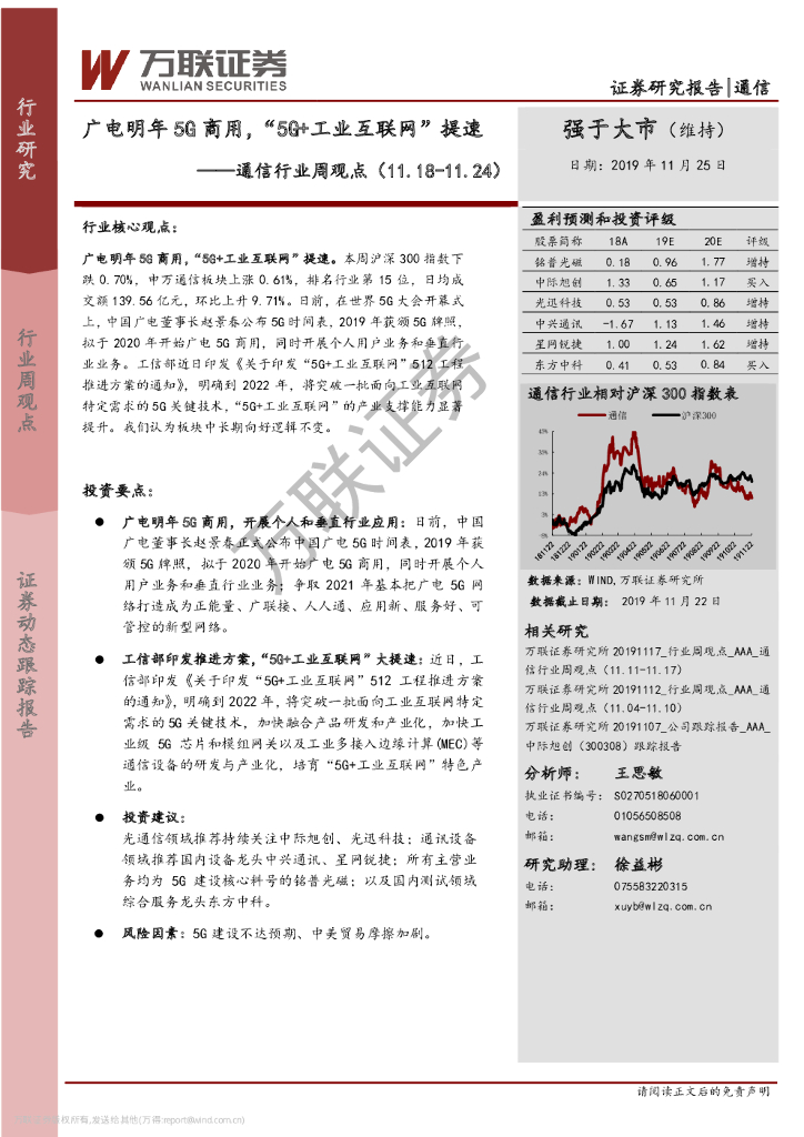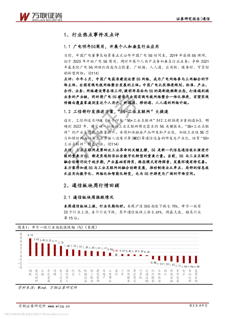 万联证券:通信行业周观点:广电明年5G商用,“5G+工业互联网”提速.pdf