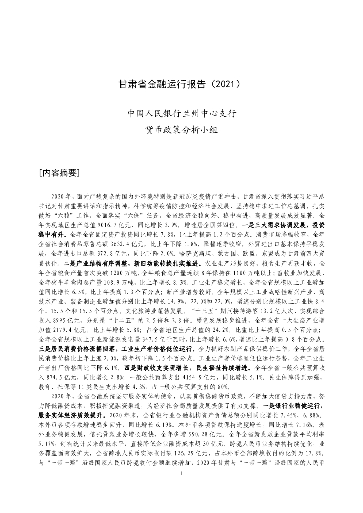 中国人民银行:甘肃省金融运行报告(2021).pdf