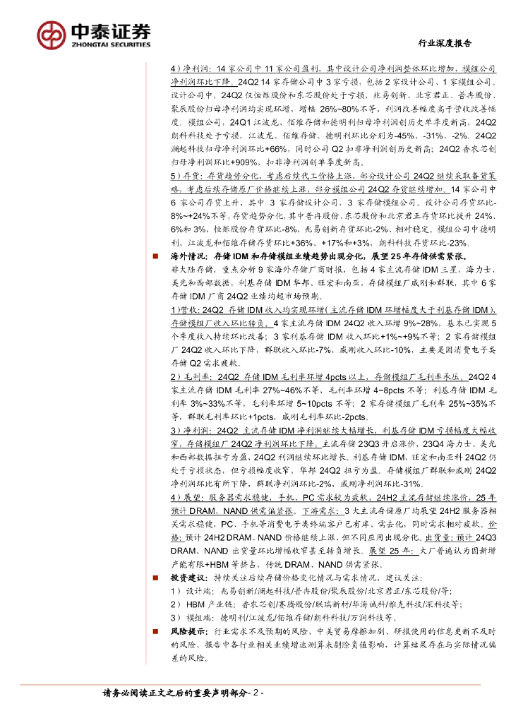 中泰证券:存储板块2024年中报总结:设计和模组业绩分化,海外大厂展望2025年供需紧张.pdf