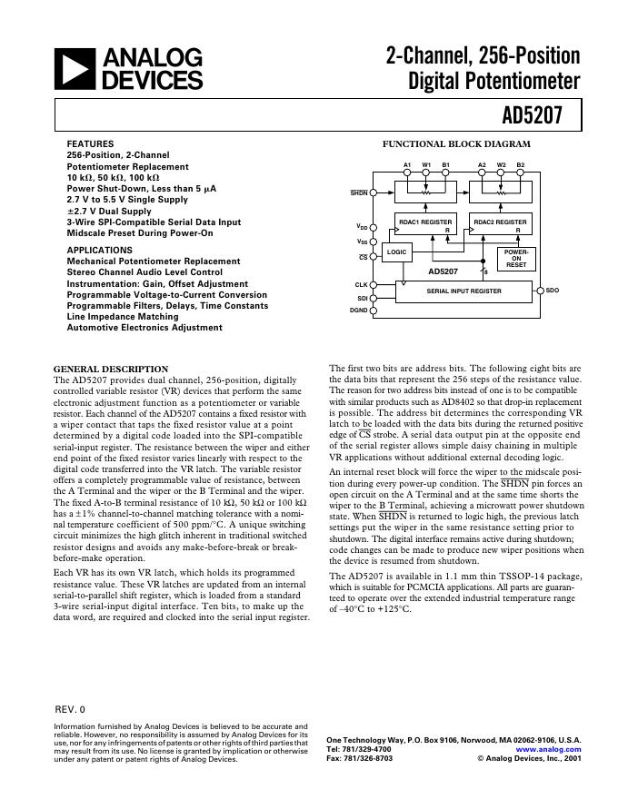 ANALOG DEVICES AD5207 英文产品数据手册 Rev 0.pdf
