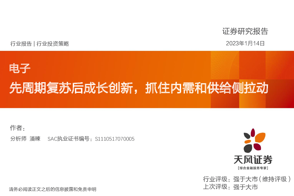 天风证券:电子行业投资策略:先周期复苏后成长创新,抓住内需和供给侧拉动.pdf