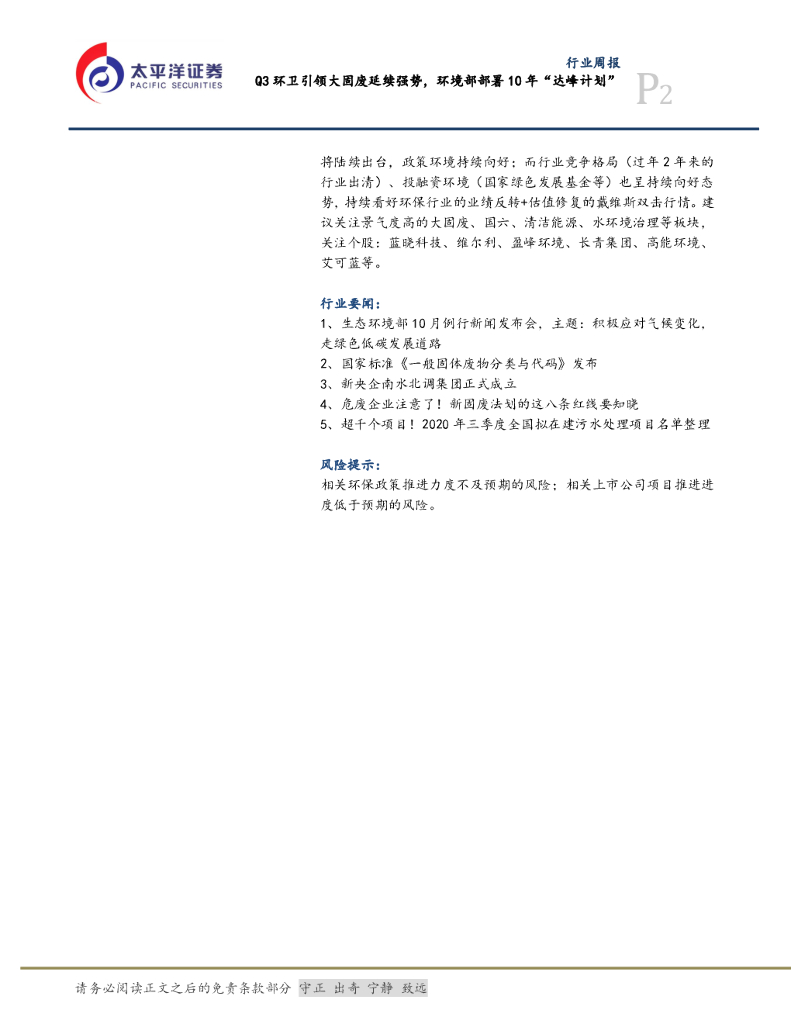 太平洋证券:公用事业行业周报:Q3环卫引领大固废延续强势,环境部部署10年“达峰计划”.pdf