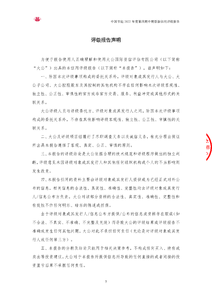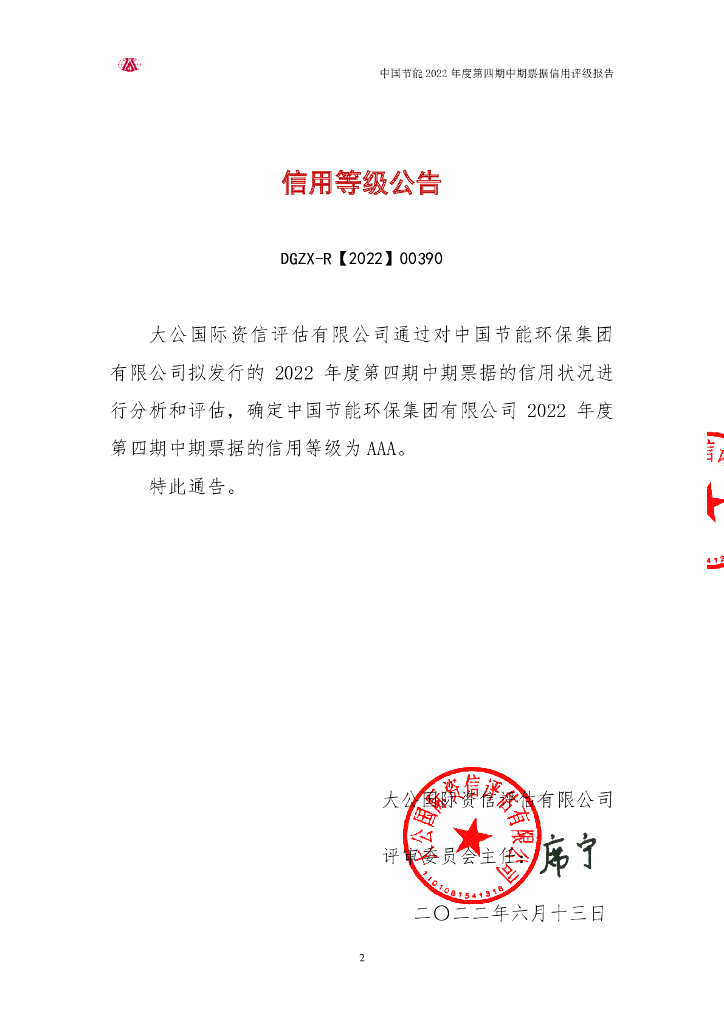 大公:中国节能环保集团有限公司2022年度第四期中期票据信用评级报告.pdf