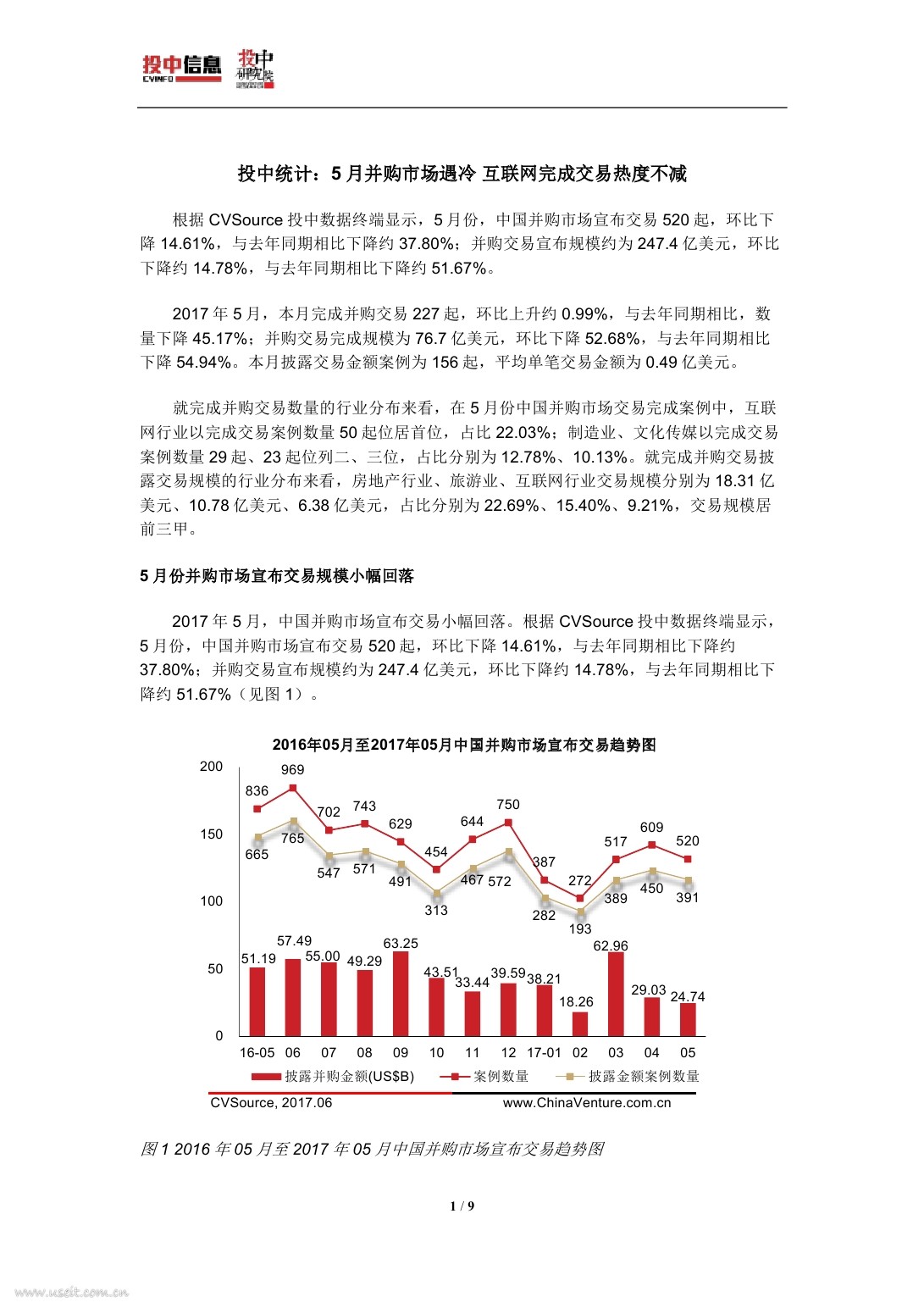 投中研究院:5月并购市场遇冷互联网完成交易热度不减.pdf