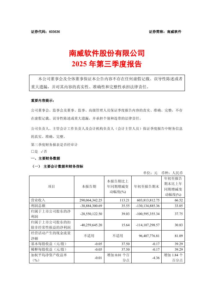 603636-南威软件:2025年第三季度报告.pdf