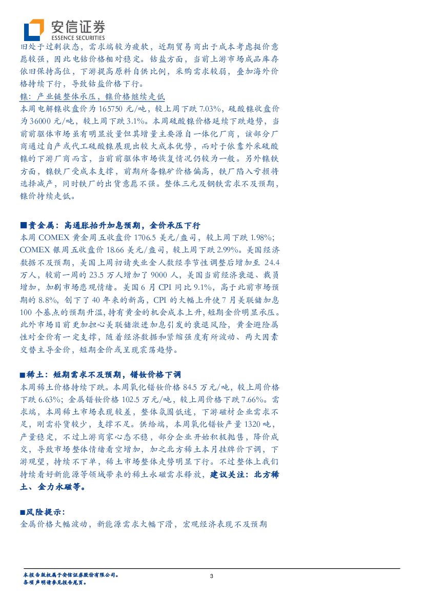 安信证券:有色金属行业周报:通胀高企金属价格承压,锂矿拍卖不改锂价乐观预期.pdf