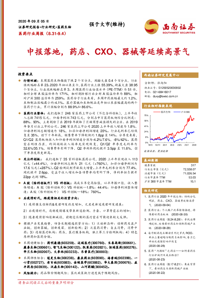 西南证券:医药行业周报:中报落地,药店、CXO、器械等延续高景气.pdf