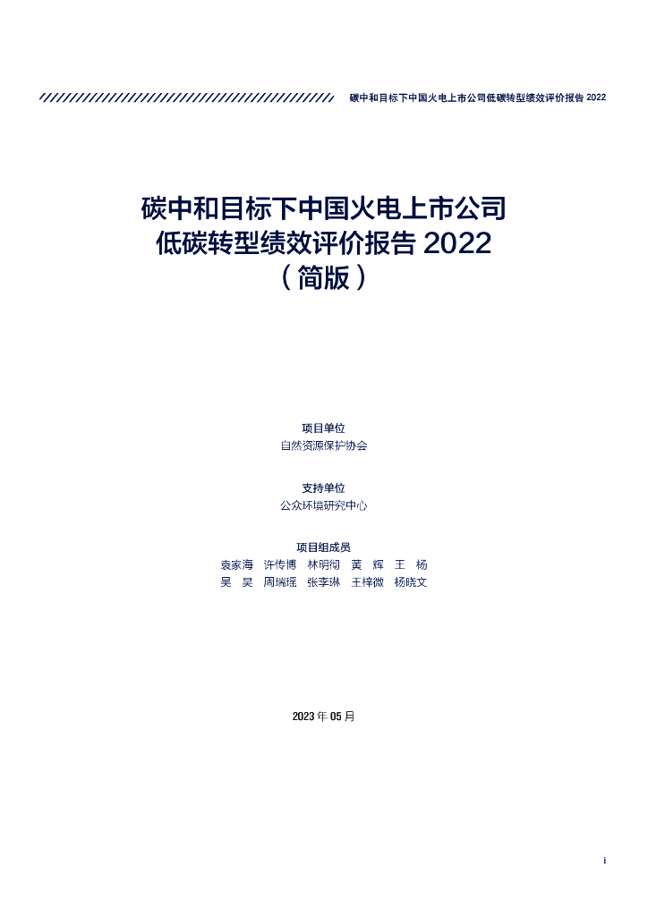 自然资源保护协会:碳中和目标下中国火电上市公司低碳转型绩效评价报告2022(简版).pdf