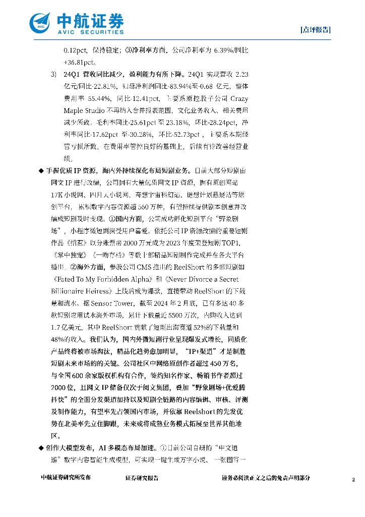 中航证券:中文在线(300364)-深耕内容核心业务,全面加速AI布局.pdf