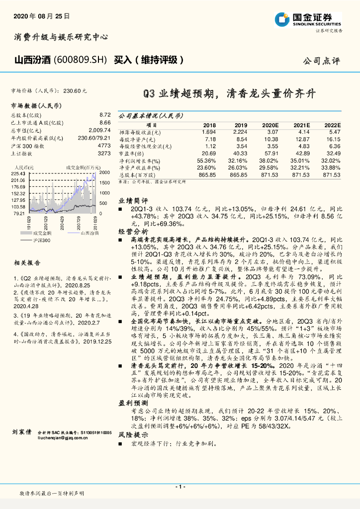 国金证券:山西汾酒(600809)-Q3业绩超预期,清香龙头量价齐升.pdf