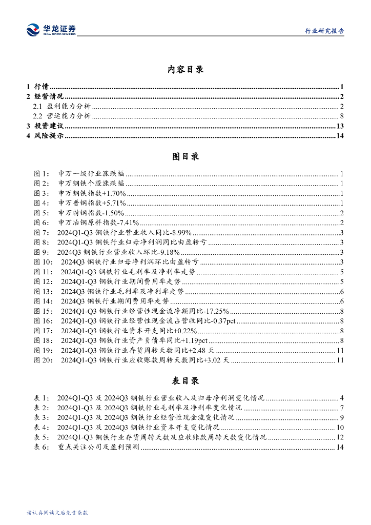 华龙证券:钢铁行业2024年三季报综述:普钢业绩承压亏损,行业亟待转型升级.pdf