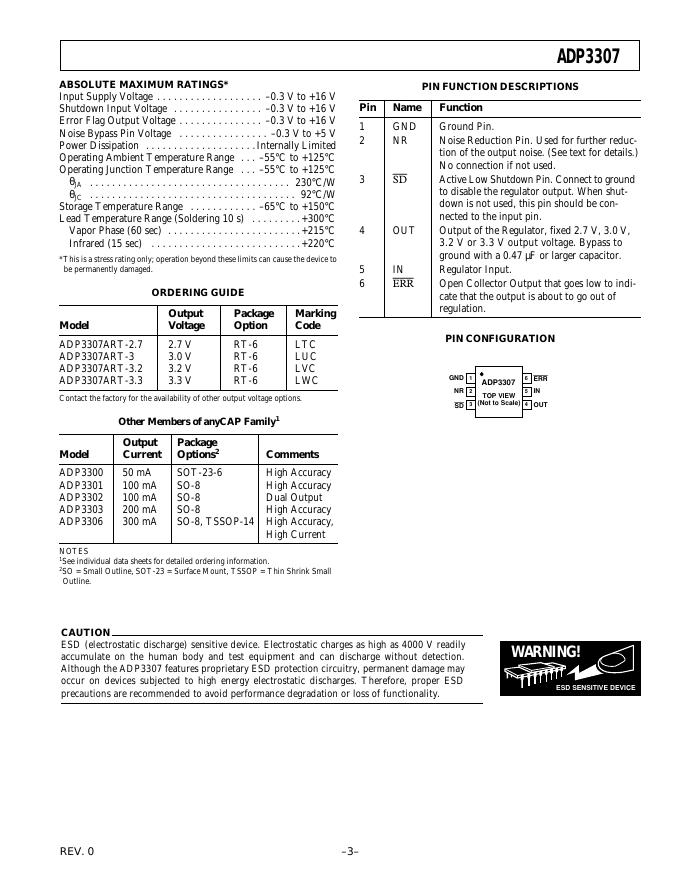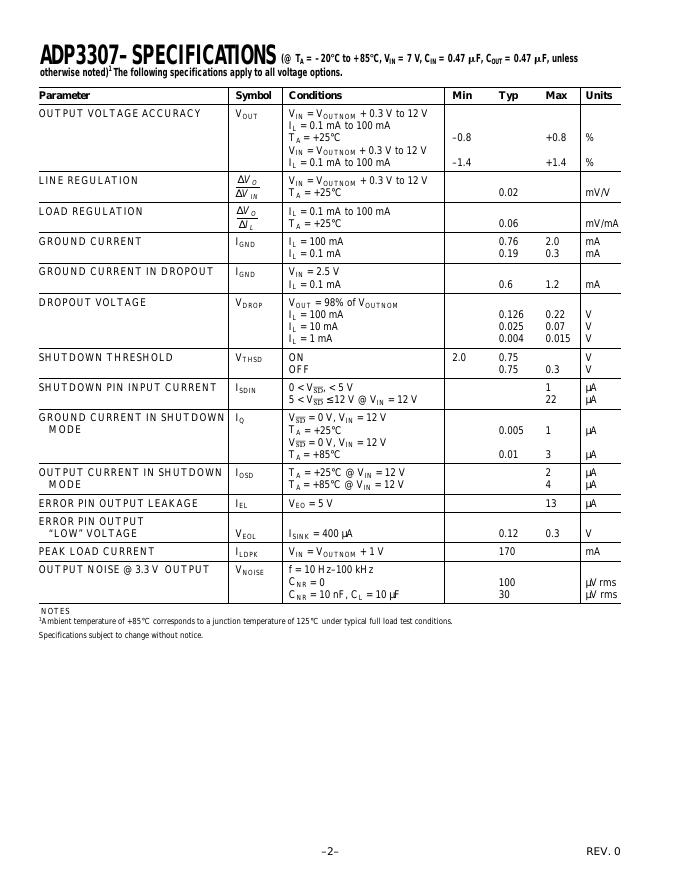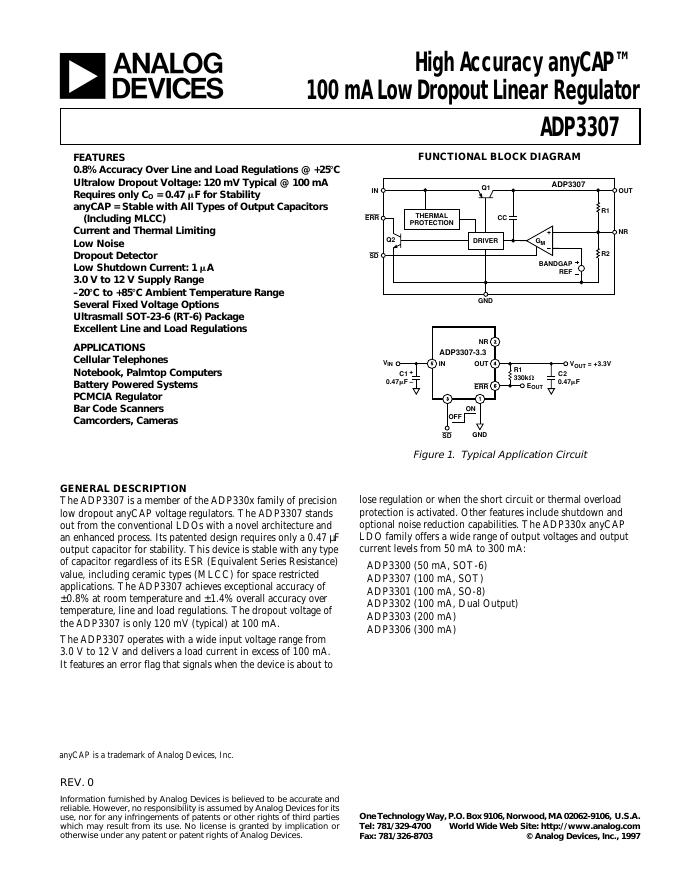 ANALOG DEVICES High Accuracy anyCAP 100 mA Low Dropout Linear Regulator ADP3307 数据手册.pdf