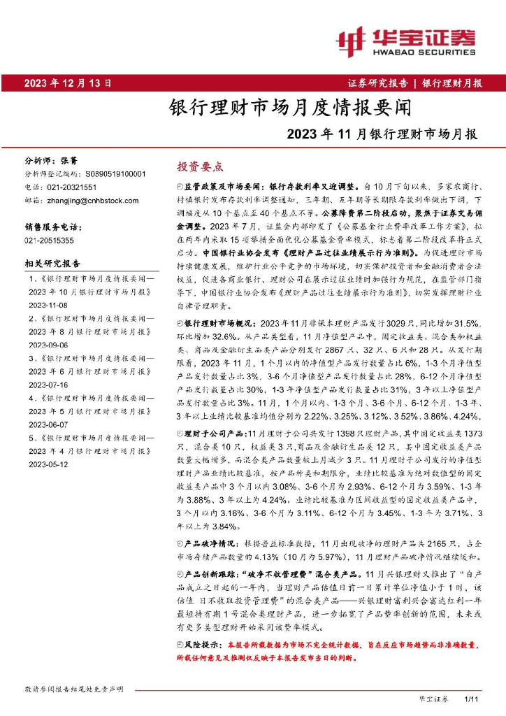 华宝证券:2023年11月银行理财市场月报:银行理财市场月度情报要闻.pdf