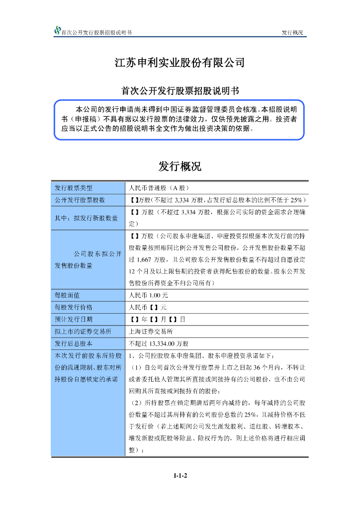 江苏申利实业股份有限公司上交所主板IPO上市招股说明书.pdf