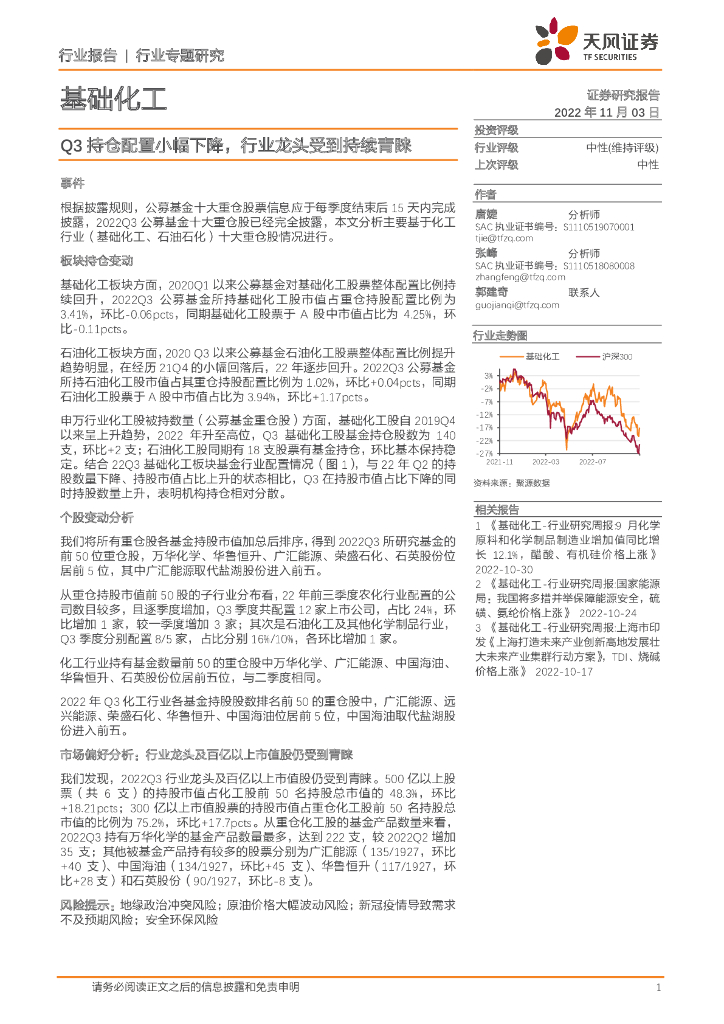 天风证券:基础化工行业专题研究:Q3持仓配置小幅下降,行业龙头受到持续青睐.pdf