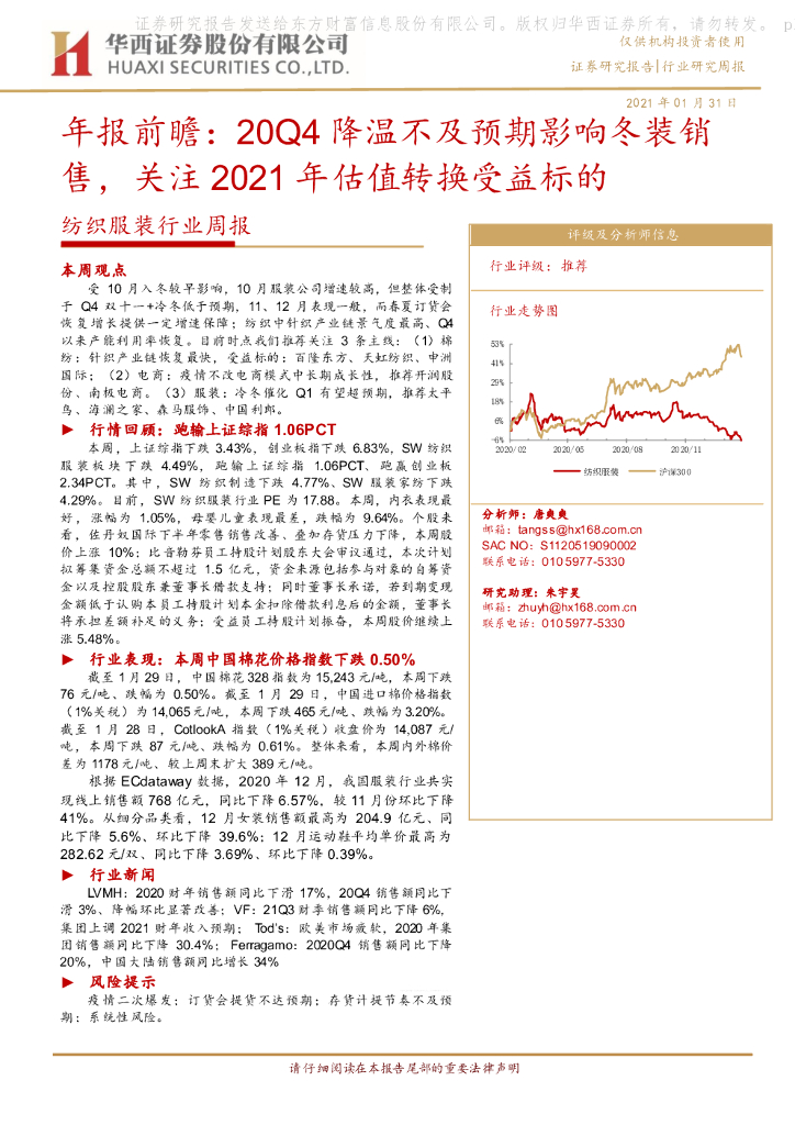 华西证券:纺织服装行业周报:年报前瞻:20Q4降温不及预期影响冬装销售,关注2021年估值转换受益标的.pdf