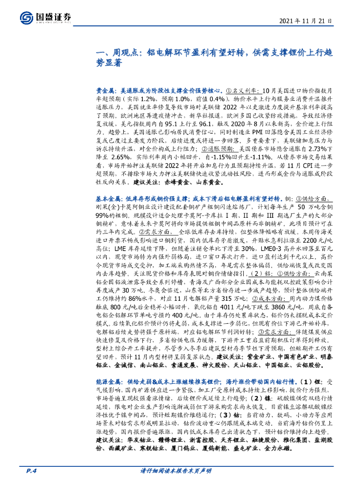国盛证券:有色金属行业周报:铝电解环节盈利有望好转,供需支撑锂价上行趋势显著.pdf