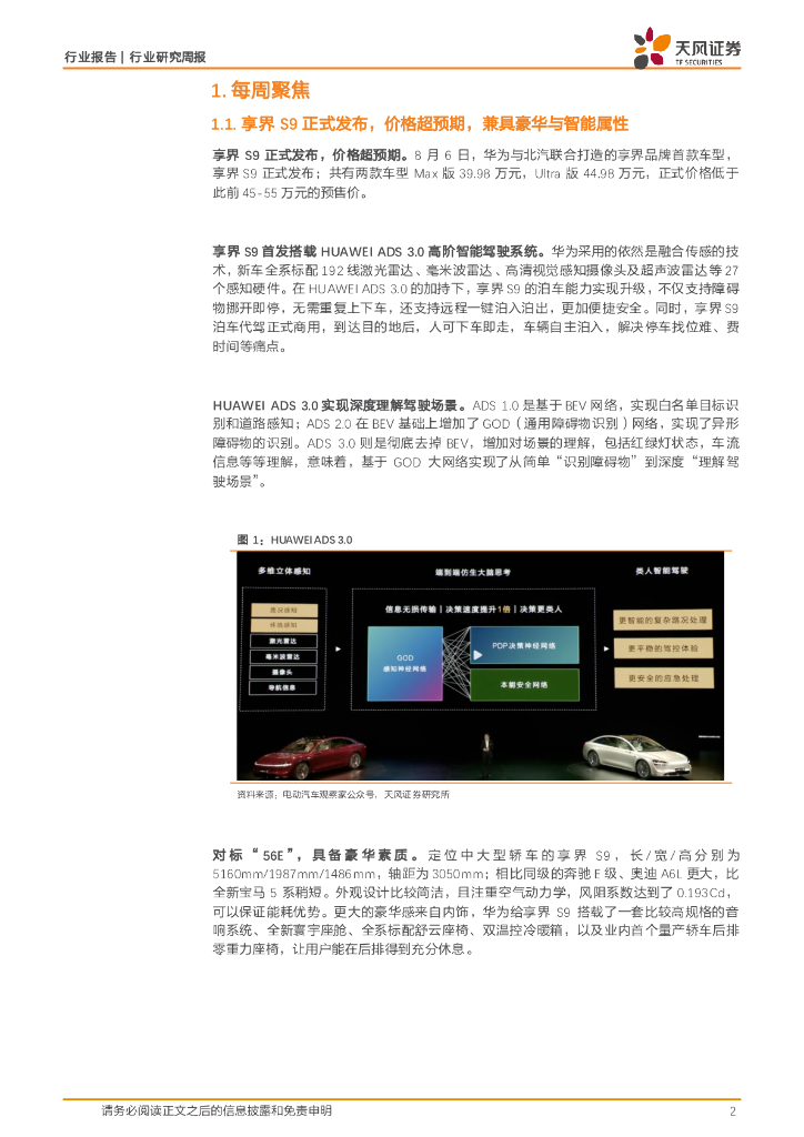 天风证券:天风汽车周报:享界S9正式发布,价格超预期,兼具豪华与智能属性.pdf
