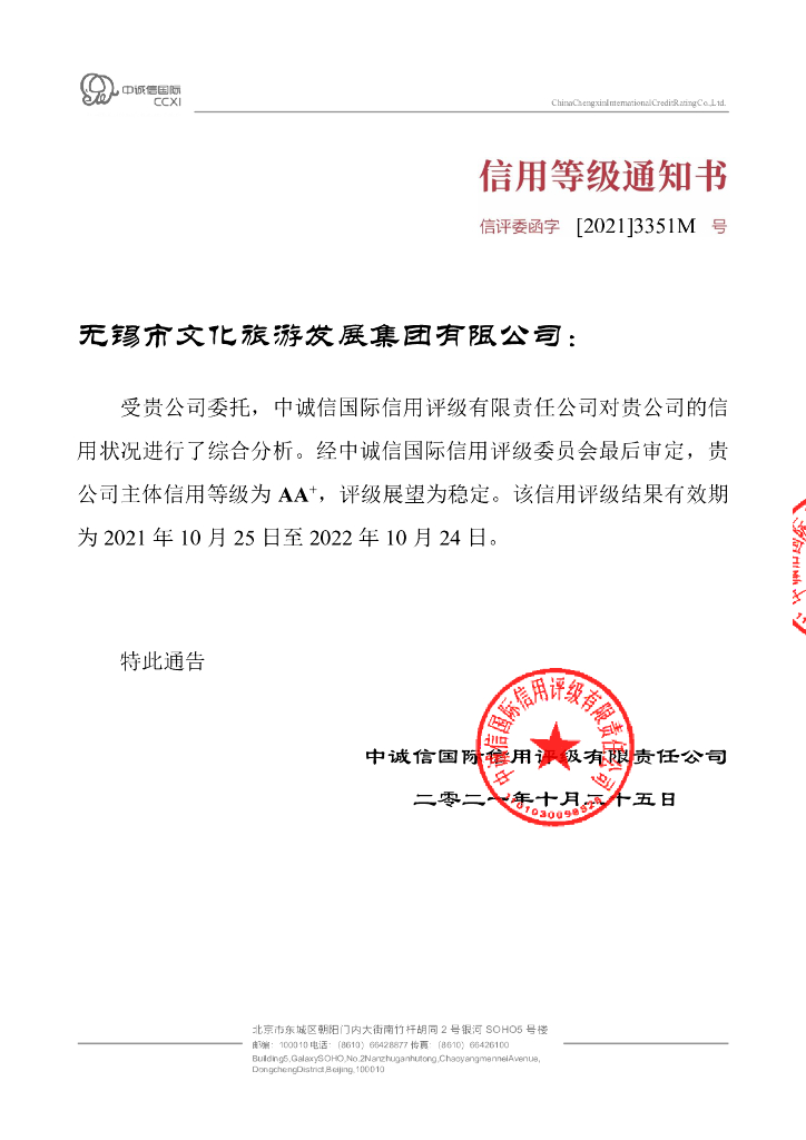 中诚信:无锡市文化旅游发展集团有限公司主体信用评级报告.pdf