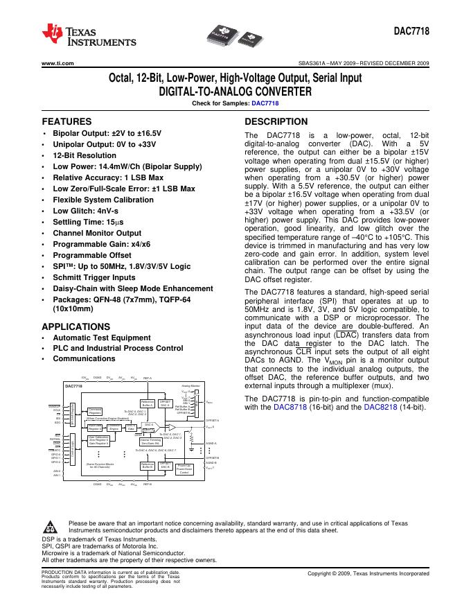 TEXAS INSTRUMENTS DAC7718 DIGITAL-TO-ANALOG CONVERTE 数据手册.pdf
