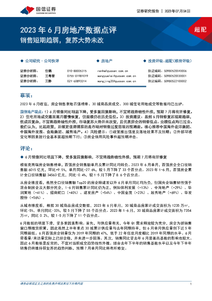 国信证券:2023年6月房地产数据点评:销售短期趋弱,复苏大势未改.pdf