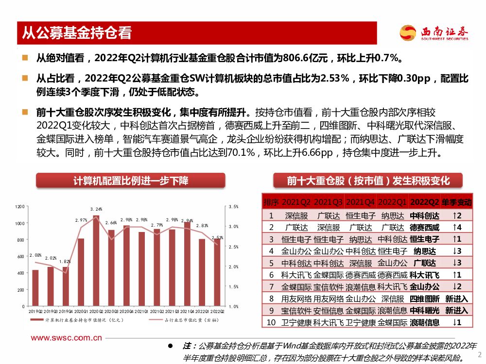西南证券:计算机行业2022年H1机构持仓分析:行业维持低配,赛道集中度提升.pdf