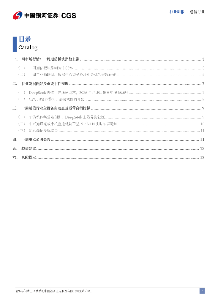 中国银河:通信行业行业周报:DeepSeek催生AI需求,CPO部署蓄势待发.pdf
