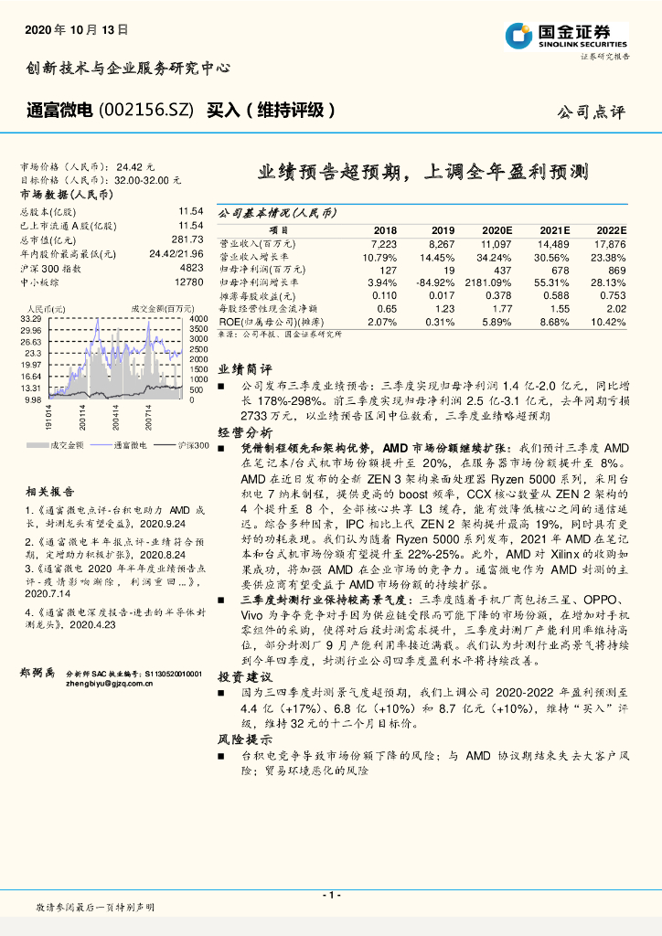 国金证券:通富微电(002156)-业绩预告超预期,上调全年盈利预测.pdf