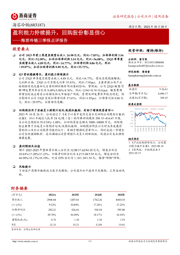 浙商证券:海容冷链(603187)-盈利能力持续提升,回购股份彰显信心.pdf