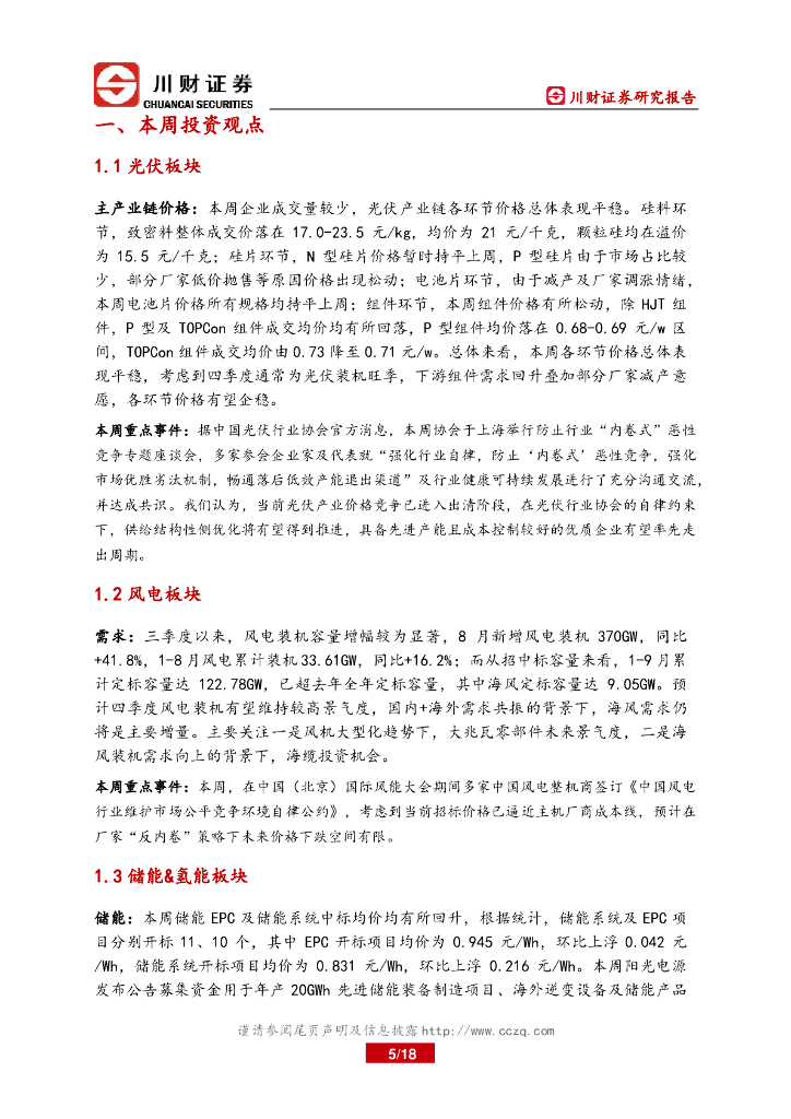 川财证券:新能源产业十月周报:新能源产业周报:光伏、风电行业达成“反内卷”共识,价格竞争压力有望纾解.pdf