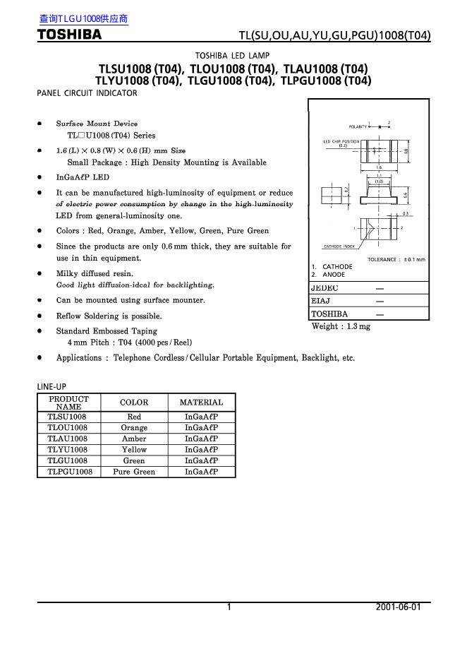 东芝 东芝 TLSU1008(T04), TLOU1008(T04), TLAU1008(T04), TLYU1008(T04), TLGU1008(T04), TLPGU1008(T04) 数据手册.pdf