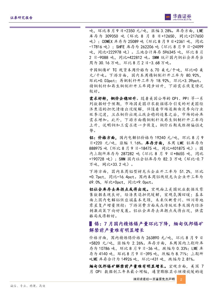 华鑫证券:有色金属行业周报:铜下游开工持续回升,铜价维持偏强走势.pdf