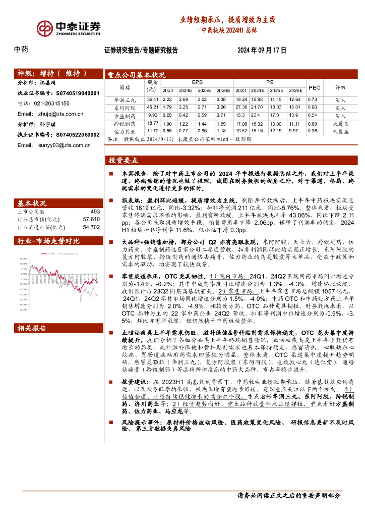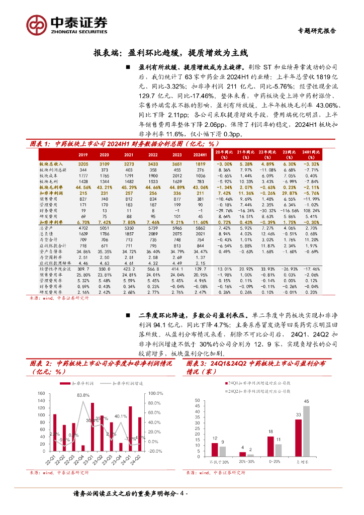 中泰证券:中药板块2024H1总结:业绩短期承压,提质增效为主线.pdf