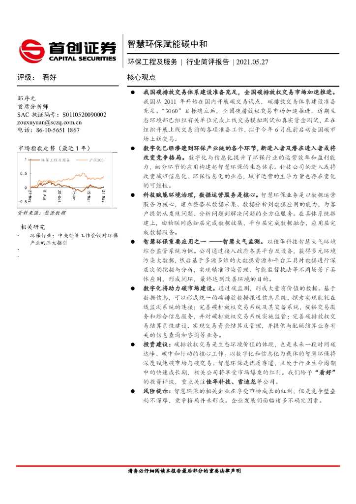 首创证券:环保工程及服务行业简评报告:智慧环保赋能碳中和.pdf