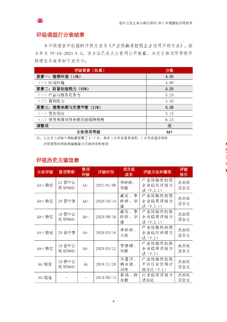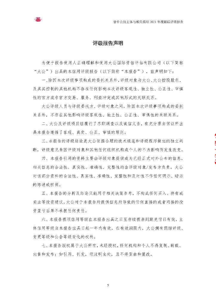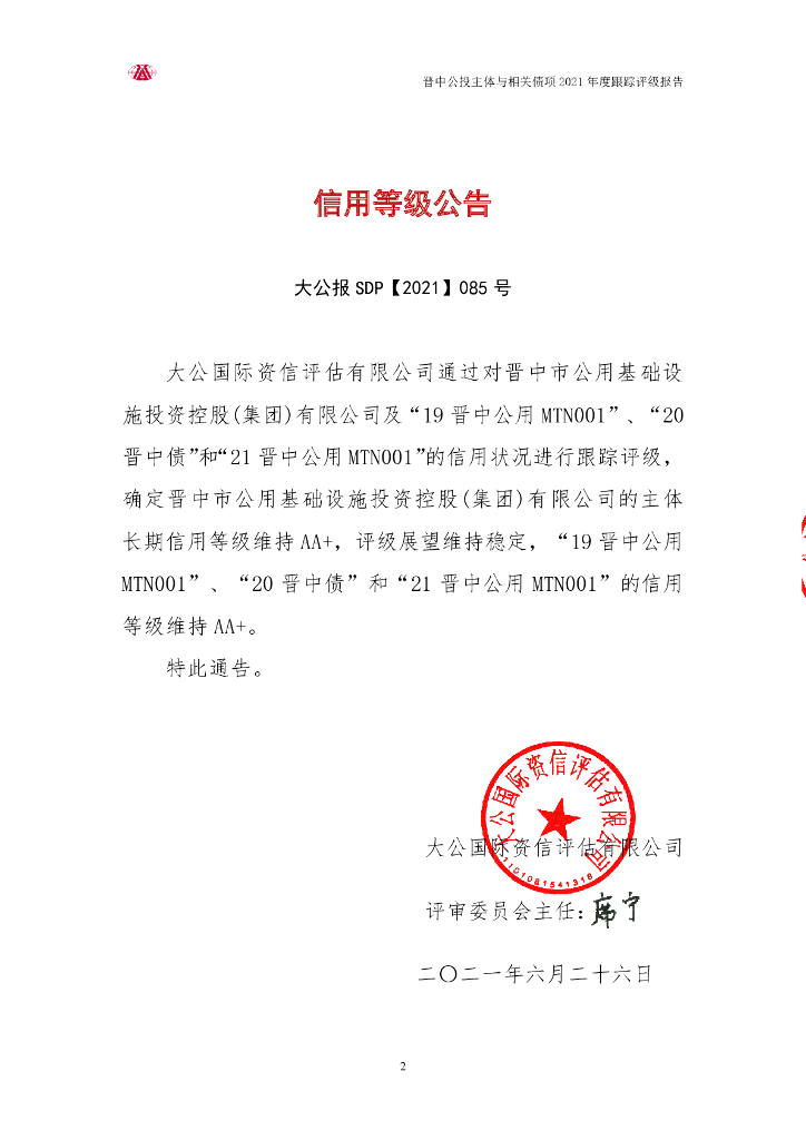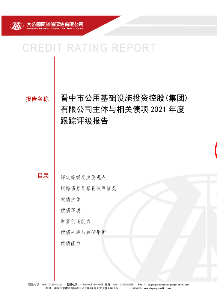 大公:晋中市公用基础设施投资控股(集团)有限公司2021年度信用评级报告及跟踪评级安排.pdf