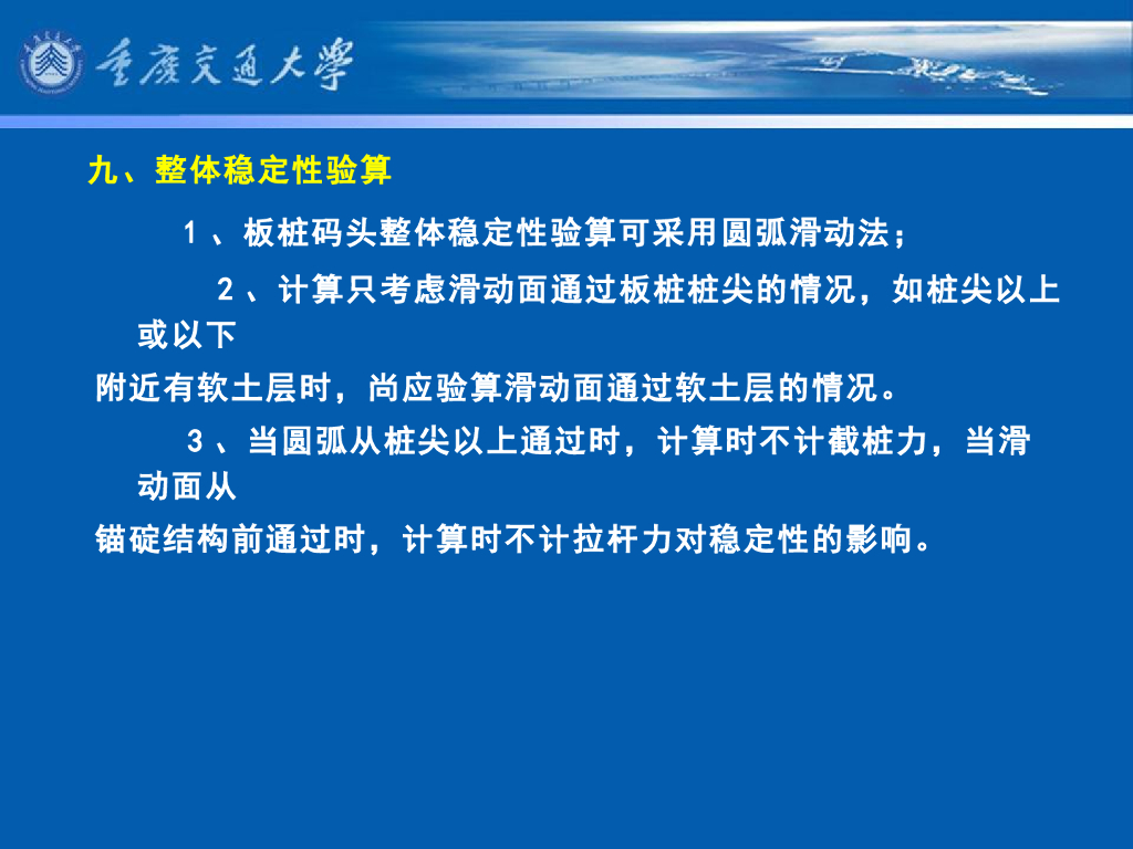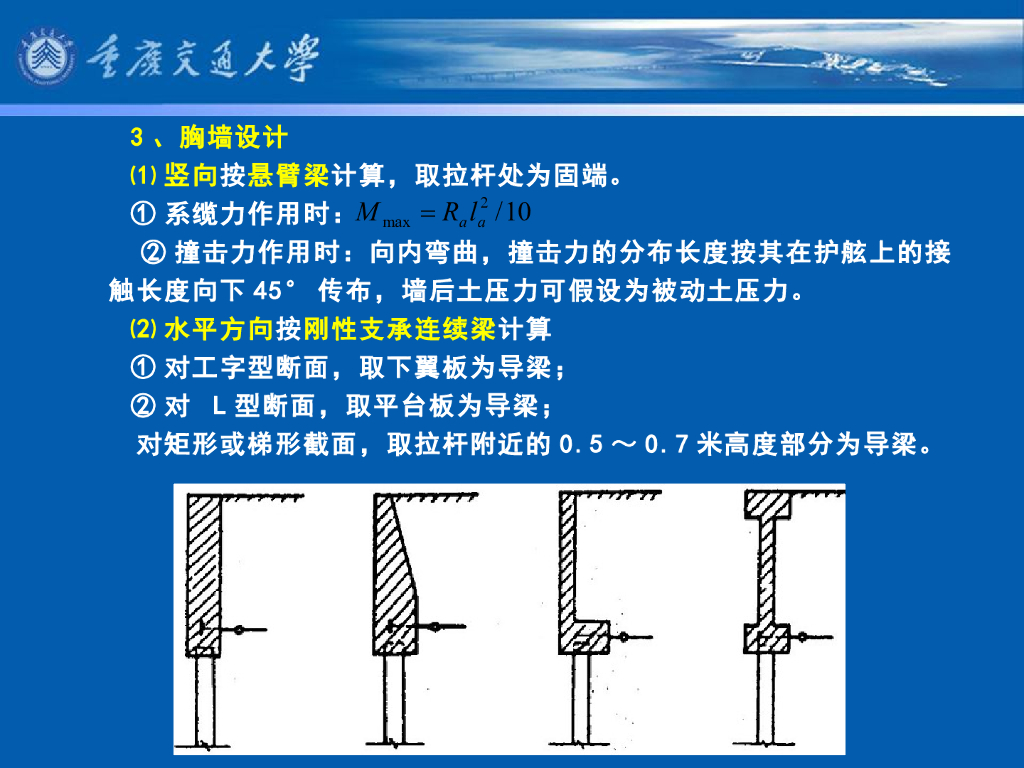 《港口水工建筑物》教学课件-板桩码头的构件设计:板桩设计、帽梁、导梁及胸墙结构的设计、锚碇结构设计、整体稳定性验算要求.pdf