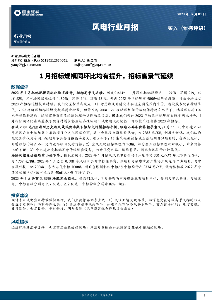 国金证券:风电行业月报:1月招标规模同环比均有提升,招标高景气延续.pdf