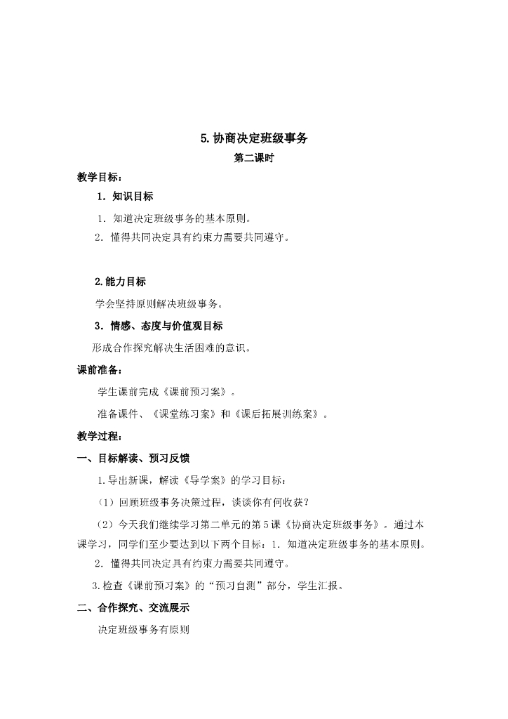 2021五年级上册 人教版小学道德与法治2.2 协商决定班级事物 1-2课时 非表格.doc
